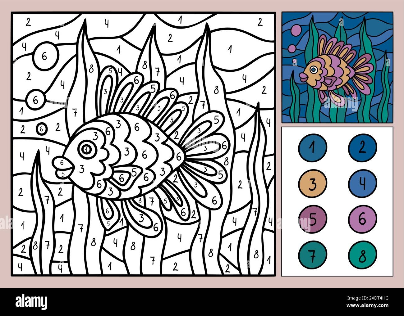 Coloring Page With Fish Character Color By Numbers Educational Children Game Drawing Kids Activity Stock Vector Adobe Stock