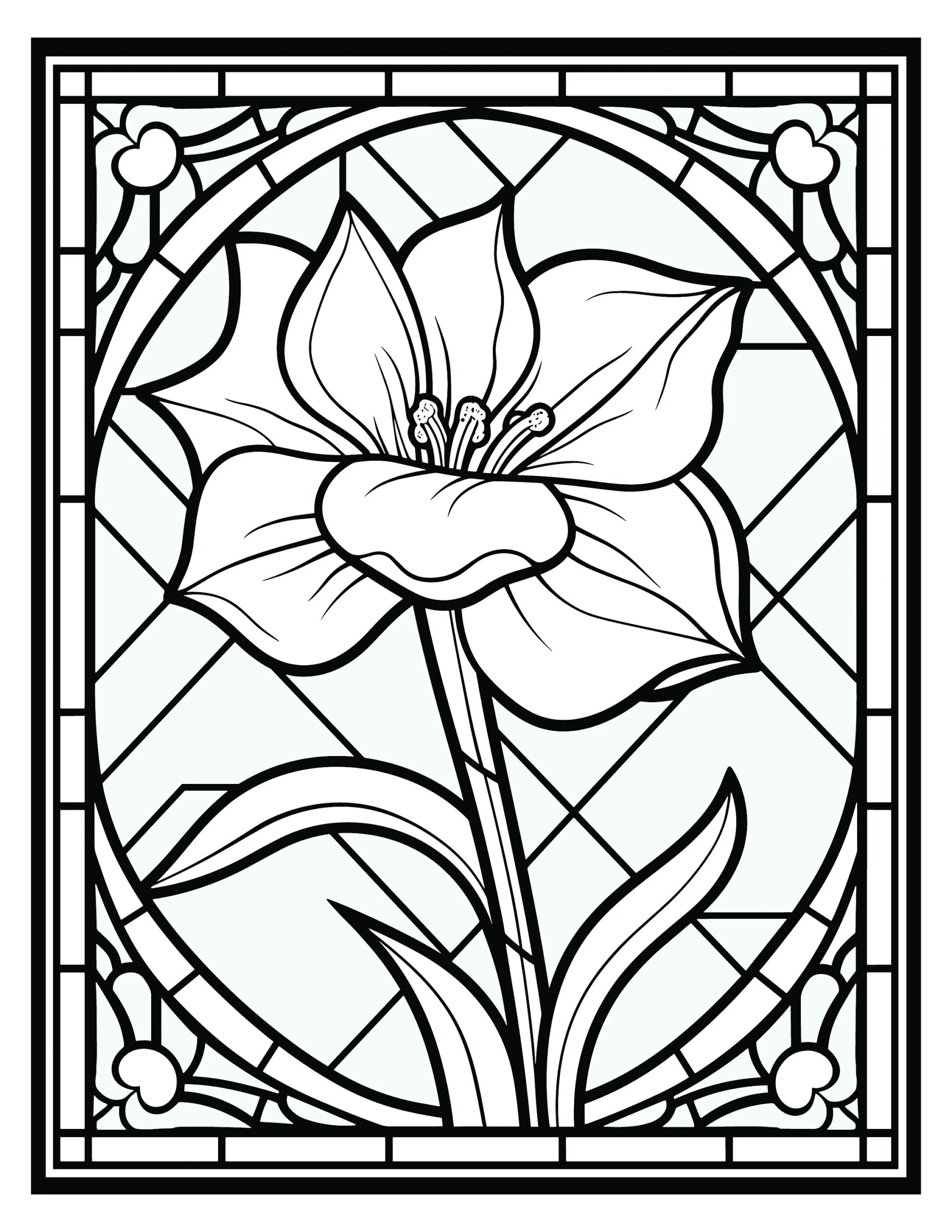 180 Stain Glass Flowers Coloring Pages Etsy